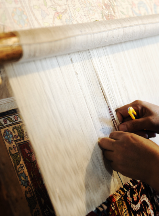Procesul de țesut manual al covoarelor a fost transmis de-a lungul generațiilor. Presupune utilizarea unor războaie de țesut, unde firele vertical sunt întinse între două grinzi orizontale. Apoi țesătorul împletește fire orizontale, între urzeturi pentru a crea designul covorului.